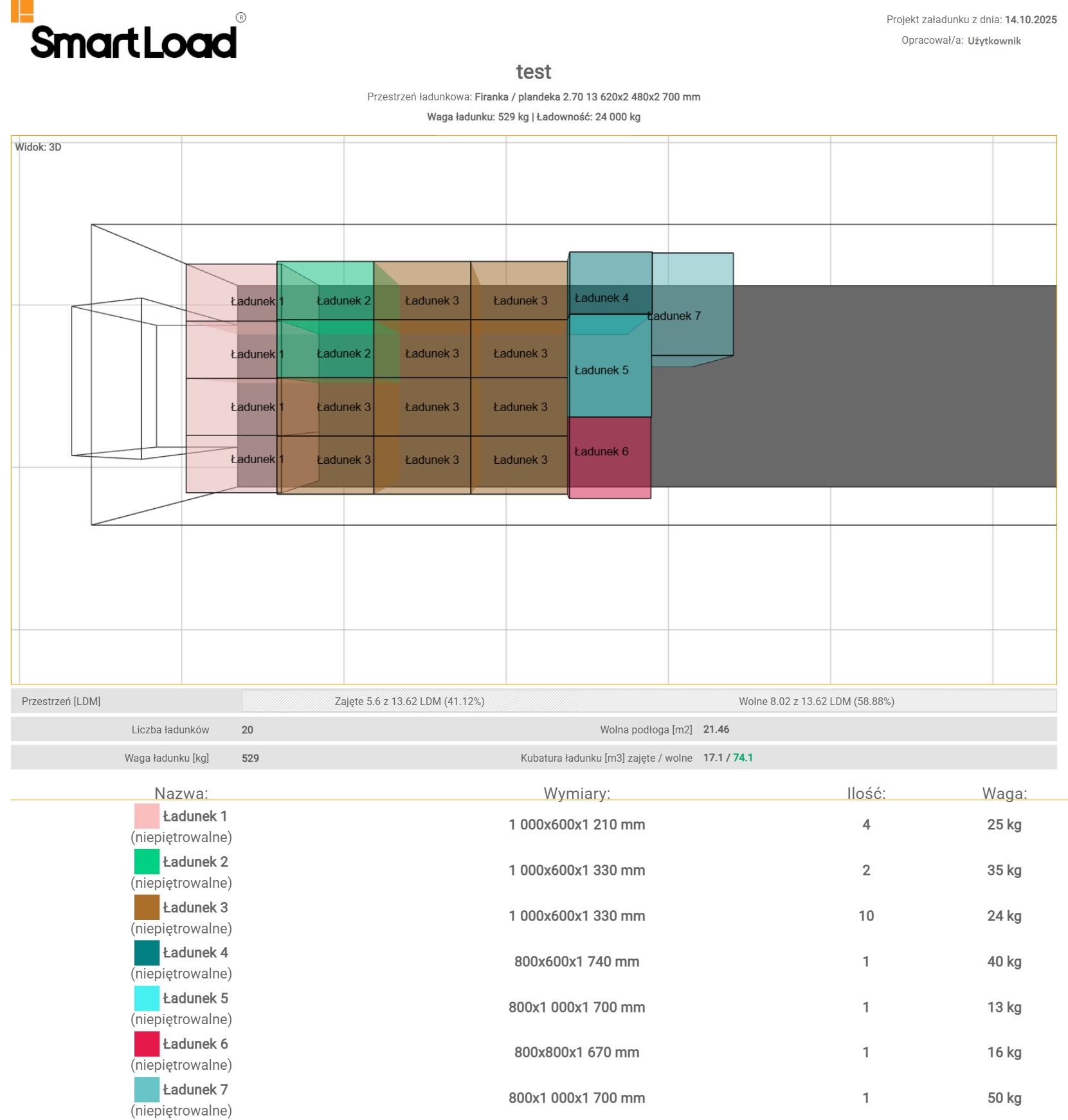 Źródło: Aplikacja Smartload - plik z eksportu projektu załadunku